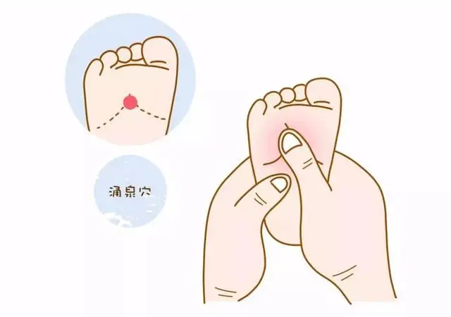 两手握热后,用右手中间三指擦左足心,至足心发热为止,然后依法用左手擦右足心。一般以擦四次为佳。按中医理论,涌泉穴位于足心,为足少阴肾经的起点,按摩这穴位,能引导虚火下降,有助于治失眠、心悸。